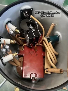 The CSP breaker is installed between the transformer’s low-voltage winding and the secondary bushing, ensuring that all secondary load current flows through its bimetal element and main contacts. By utilizing the thermal effect of the built-in bimetal strip for overload protection and the electromagnetic action of the magnetic trip for short-circuit response, the breaker can quickly interrupt fault currents and provide reliable protection for the transformer.