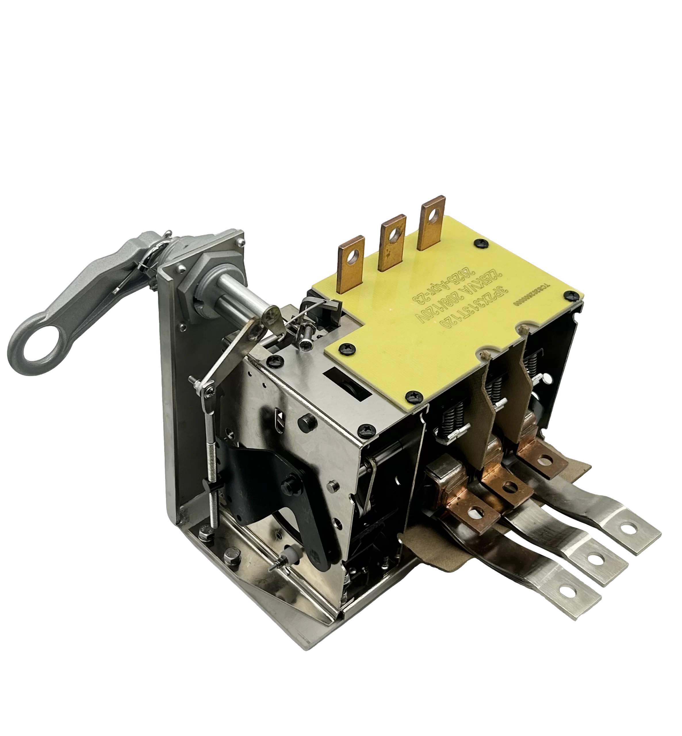 35mm mounting hole three phase circuit breakers, used for three phase 225-300KVA Pole Mounting high performance transformers. CSP oil immersed low voltage circuit breaker is installed on the secondary winding of the transformer,uses oil for insulation and arc extinction to protect electrical systems from faults.
